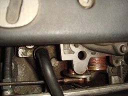 では、最後にトラブルの正体ですが、アクセルのワイヤーが巻かれた円盤状のものからリンケージが外れたのです。 外れ方がちょっと不自然なのですが、恐らく経年劣化でひび割れができ、爪のように折れ曲がった割れ目から外れたのでしょう。なんとかロッドを差込みましたが、結局、割れ目は大きくなり外れてしまいました。 南無さん・・・。 |
