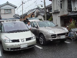 連休二日目は、これまた無謀にも天下の紅葉名所の嵐山へ行ってきました。 当然、大渋滞のこの辺りに車で行くのも無謀なので嵐電で行ったのですが、着いた早々いきなり無謀者に遭遇しました!。(笑) まっ、好きな車で行きたい気持ちは全く分からないでもないが、少しは学習してから来いよ!と云いたい気分です。ただ、騒々しく派手な車だから自然と人が避けてくれるのはちょっと羨ましいですね〜。(^^ゞ |