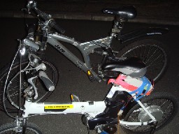 今夜試乗したインホイールモーターに改造した電動アシストチャリ、パワーは無いけど、夢はデカイぞ!。(笑)