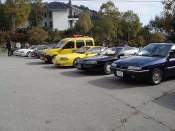 陽だまりの中、ガードレールで守られてはいるけど、コーナリングに失敗した車が突っ込んできそうな道路横のGTA本部は、排ガスまみれになりながらも楽しいパフォーマンスを間近で拝むことができました。(^^ゞ 因みに基本的には穏やかなイベントなので、パークウェイでのD走行まがいな走りは禁止なのです・・・、一応は。 |