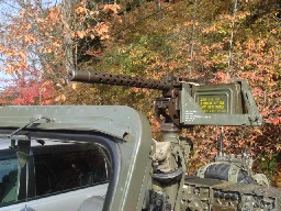 さて、今日のイベントのハイライトは、DB7やF-40、ましてやカウンタック・レプリカでもなく、実は突如として現れたミリタリーマニアのジープです!。 なんと運転席にはライフル、荷台には機関銃!?、旧そうな無線機と迷彩シートも装備しています。 残念ながら迷彩服着たオーナーには会えませんでしたが、間違いなく本日最高のKYな車です。 でも、決して嫌いじゃないんだよなぁ〜、こんな人。(^^ゞ |