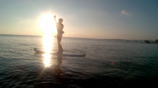 さて、人生初のSUPにトライ。いやー、こんなの簡単と思ってましたが、完全に舐めてました。前に進むがパドルの漕ぎ方が悪く、左右にうろうろ。で、へっぴり腰だとバランス崩して海にドボンです。翌日、全身筋肉痛!、次来るときはSUPツーリングにトライしたいですね。 |