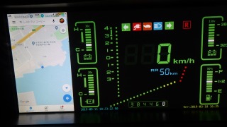 急速だけでなく、私が一番気に入っている点は針のメーターから液晶モニター化されたデジタルメーターです。アナログの速度計や各種メーターは忠実にデジタル表示されいる中、なんとiPhoneのヤフーカーナビのアプリの画面がミラーリングとして表示可能です。つまり、この液晶モニターはiMacが動いており、スマホのミラーリング表示化は楽勝なのです。 |