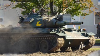 意外と迫力があったのは戦車の走行展示。古い74式といえども基地内の芝生をがんがん耕していきます。目の前数メートルの距離で急発進&急制動、ターンしてくれるのでブルーインパルスより楽しめたかな。こりゃ、富士の総火演が人気なのもうなずける。 |