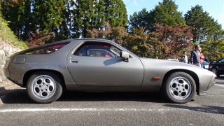 久しぶりの京都の旧車の集まり、高雄サンデーミーティングに行ってきた。そこで、928を発見。なんと、この928は昨晩の小牧基地の帰りに遭遇した928である。名神を走行中、525iで928の後ろ姿に見惚れて走ってました。この天空を仰ぐ巨大な卵、まず最近の車では類を見ないデザイン。昔は巨大にみえたボディが後ろからみると・・・なんと丸っこくて小さいものか、時代ですね。 |