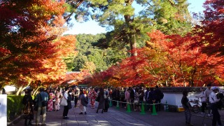この日は天気も良く、疎水の水路閣を散策し永観堂へ。多いのは分かってはいるけど・・・綺麗な紅葉を見たくて訪れていると・・・、入り口の門から想像を絶する長蛇の列。多分、2時間は軽く待つくらいの行列なので諦めました。これまで多少の待ちはあったけど、ここまで酷い状況は初めてです。 |
