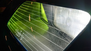 さて、今回のポイントは念願の広いフロントガラスに遮熱&UVカットのフィルムを内側に貼りました。 フィルムはウルトラビジョンのカメレオンステルス。車検対応、透過率90%、UVカット99%、IRカット20%、さぁ夏が楽しみだぞ!(^^ゞ |