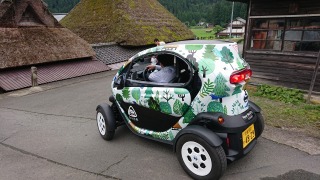 レンタカーで借りた四駆プリウス E-Fourの活躍するシーンが無かったのが残念。とはいえ、残雪の上でグッとアクセル踏んでわざとスリップさせると、リアのモーターが駆動して4WDで走ることが出来て面白かった。因みにドアミラー横のモノは「鹿笛」。50km/h以上の走行風で高い周波数が発するという。夜の周山や静原で鹿に何度か遭遇したことがある。これ必要かもね!?。(笑) |