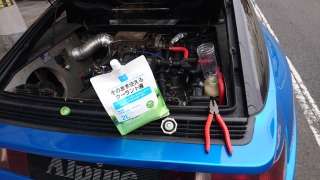 先日発生した冷却水の漏れを確認するため、念の為にクーラントを補充してみた。因みに最近のクーラントはまるで洗剤パッケージのような容器で売られている。濃い液を薄めて使うよりは、そのまま注入出来るものとしてて売られているのが殆どだ。まぁ、最近の新車はトラブルが少なく、ディーラーで整備込みの年間保証されているからユーザーが機械を触るなんて、まず無いのでしょう。 |
