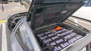 今回はデロリアンEVは、広島から東への遠征企画、通称「神戸アタック!」のゴール地点に集まるというもの。デロリアンは三菱 i-MiVEから移植されたモーター、コントロールユニット、つまり手作りコンバート系には珍しい、急速充電が可能な車検が通るEVなのです。参考まで、世界にはもう一人、デロリアンをEV化した猛者がいる。 |