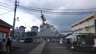 舞鶴まで来たらやはりここ、海自の北吸桟橋の見学。残念ながら、今日は艦内見学は無し。隣国との緊張がある中、なかなかのど迫力のイージス護衛艦「DDG-177/ あたご」が係留されていた。艦内見学が出来る日が告知されたら、是非またGTAでツーリングを企画したいですね。(^^ゞ |